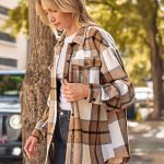 - Feature:It features soft fuzzy fabric, front button closure , and midweight feel for keeping warm all day. It’ll be the prefect addition to your wardrobe.Two buttoned chest pockets / long sleeves with button cuffs / plaid pattern / loose fit shacket / collared.This shacket is a must have in your closet