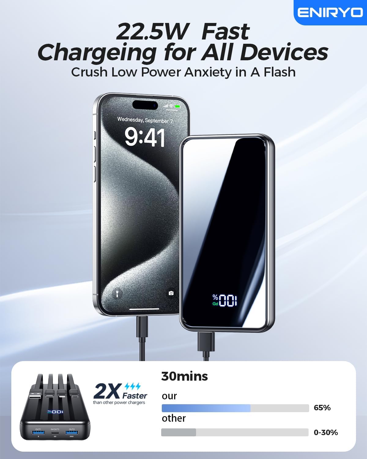Portable Charger, 42800mAh Power Bank Built-in Cable, PD 22.5w Fast Charging Powerbank, External Battery Pack with 6 Outputs & 2 Inputs, Travel Phone Charger Compatible for iPhone,Samsung,Google